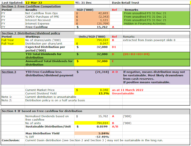 Talking about when the rubber meets the road from my last post and all hell broke loose indeed. Lendlease Global Commercial REIT ("LREIT") announced on 22 March 2022 the impending kick off of the private placement as well the preferential rights issue of 29 units for every 100 units owned and wow, this is more than double the amount I was expecting. As I read on the fund raising document, I nearly fainted when they revealed the price of the rights issue to be at a whopping 9.6% discount to the weighted average market price- a low ball offer of S$0.72 per unit. Unit-holders who have no money or refuse to subscribe will be severely diluted by the super low ball price of S$0.72 per unit which is a 20% discount to the January 2022 peak of S$0.90 per unit.